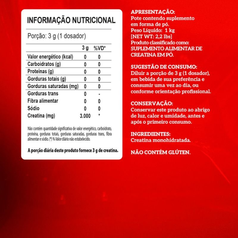 Por ser uma apresentação em pouch de 1kg, o produto oferece praticidade para quem deseja uma embalagem maior para uso contínuo. A linha aparece na seção oficial de creatinas da Integralmédica como uma das opções da marca.
