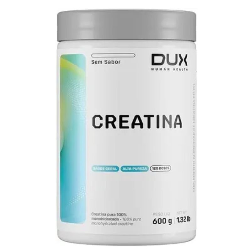 A marca informa que a creatina auxilia no aumento do desempenho físico durante exercícios repetidos de curta duração e alta intensidade. No produto oficial de 300g, a DUX também orienta o preparo com 1 dosador de 5 g em 200 ml de água, e essa informação é coerente para a linha monohidratada. A existência da versão 600g aparece em página oficial promocional da própria marca.