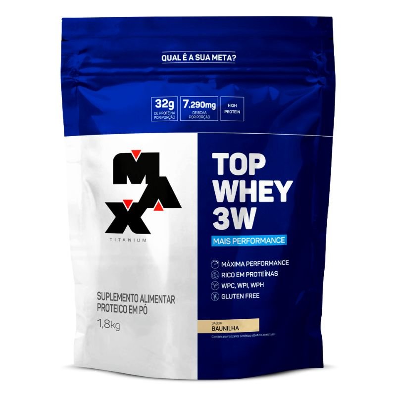 O Top Whey 3W + Performance 1,8Kg Max Titanium é um suplemento proteico avançado, formulado com três tipos de whey protein: concentrado (WPC), isolado (WPI) e hidrolisado (WPH). Segundo a Max Titanium, essa combinação entrega alta concentração de proteínas e aminoácidos, especialmente BCAAs, auxiliando no ganho de massa muscular, recuperação eficiente e manutenção da massa magra.